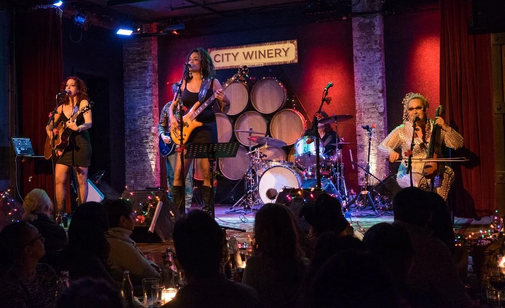 Aly Palmer (center) performing recently with the trio she co-founder, BETTY, with Elizabeth Ziff and Amy Ziff. (Photo by Marnie Joyce)